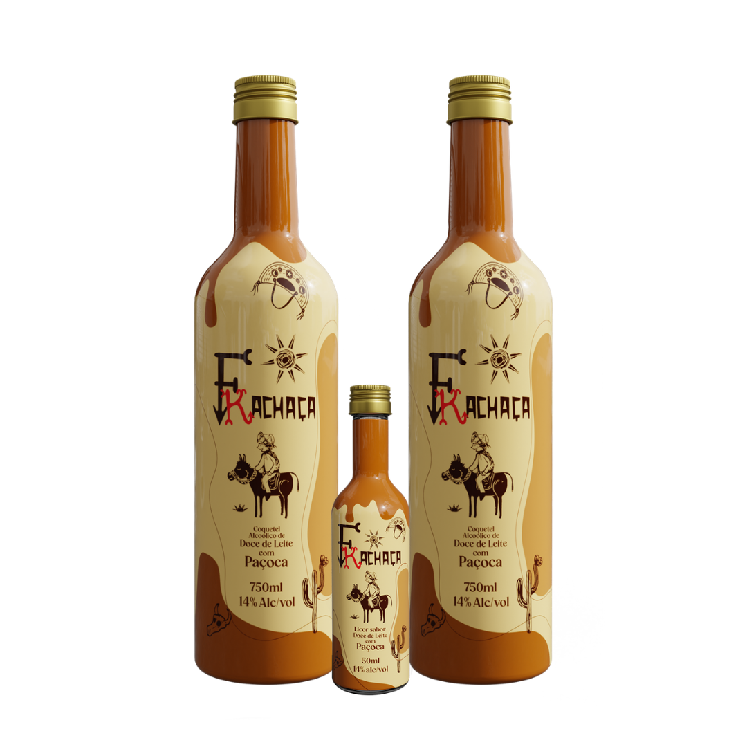 Fkachaça doce de leite com paçoca – Kit com 2 unidades de 750ml e 1 unidade de 50ml